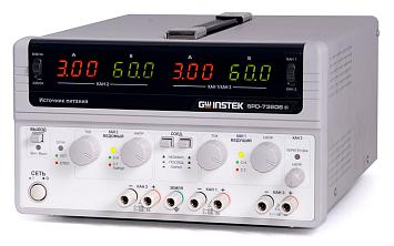 По пределам регулирования новый источник SPD-73606 заменяет сразу два линейных источника питания серии GPC (3060D и 6030D), примечательно то, что он в 3 раза меньше их по массе. Уровень пульсаций напряжения импульсного источника составляет 5 мВскз / 50 мВпик.